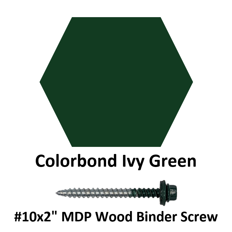 #10x2" MDP Wood Binder Screw Colorbond Ivy Green