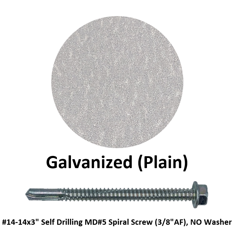 #14-14x3" Self Drilling MD#5 Spiral Screw (3/8"AF), NO Washer Galvanized