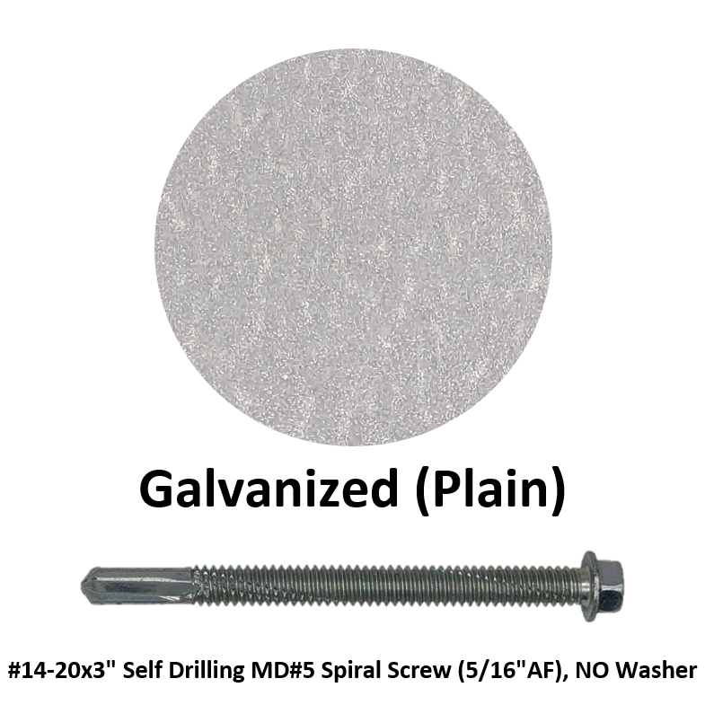 #14-20x3'' Self Drilling MD#5 Spiral Screw (5/16"AF), NO Washer Galvanized