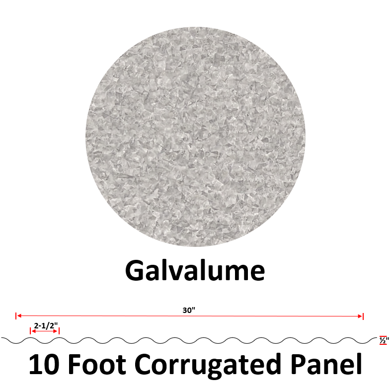 26Ga. Corrugated 30" x 1/2" - 10' Long Galvalume