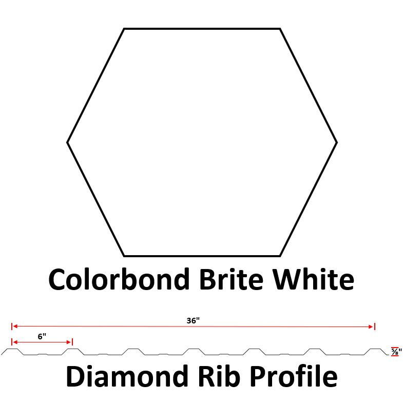 28GA. 36" wide profile with 5/8" high trapezoidal ribs, 6" on center with one minor rib between the major ribs.