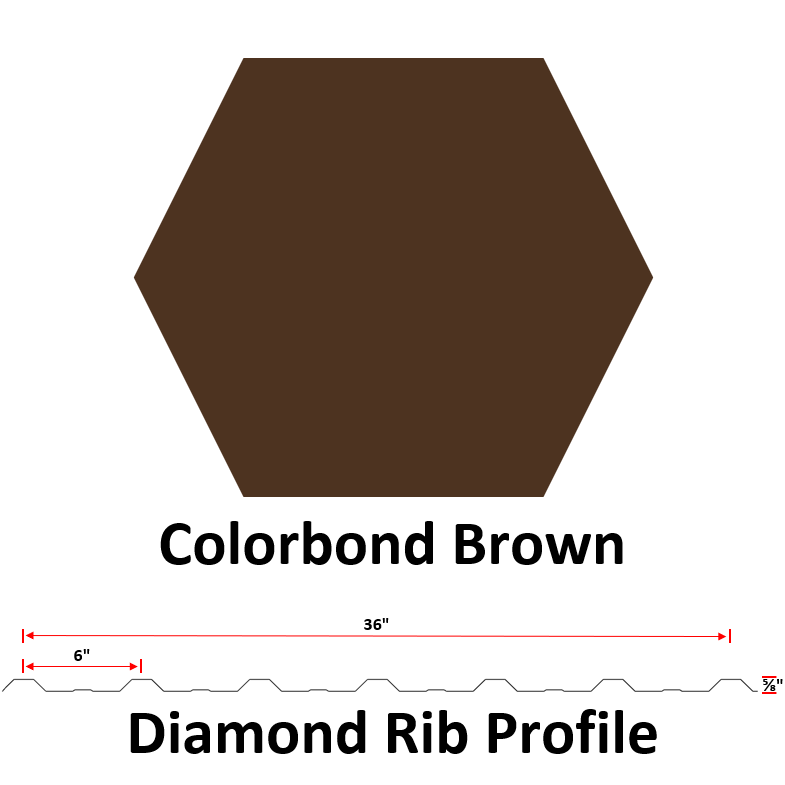 28GA. 36" wide profile with 5/8" high trapezoidal ribs, 6" on center with one minor rib between the major ribs.
