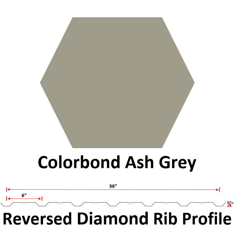 28Ga. 36" REVERSED Diamond Rib COLORBOND Ash Gray