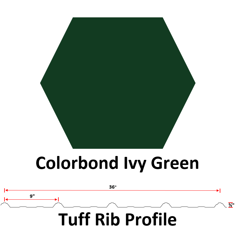 28Ga. 36" Tuff Rib COLORBOND Ivy Green