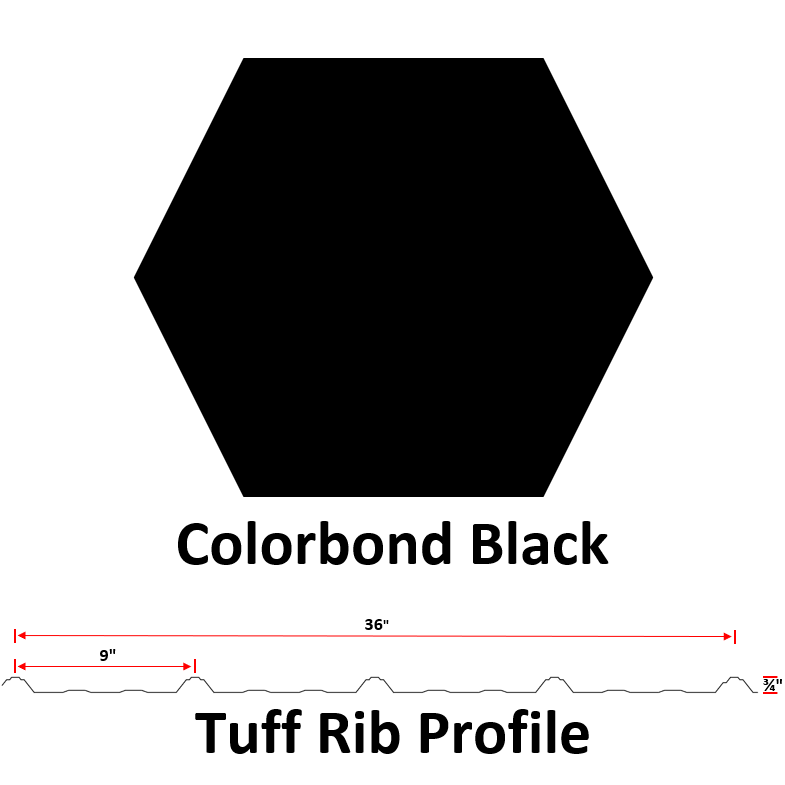 28GA. 36" wide profile with 3/4" high trapezoidal ribs, 9" on center with two minor ribs between the major ribs.