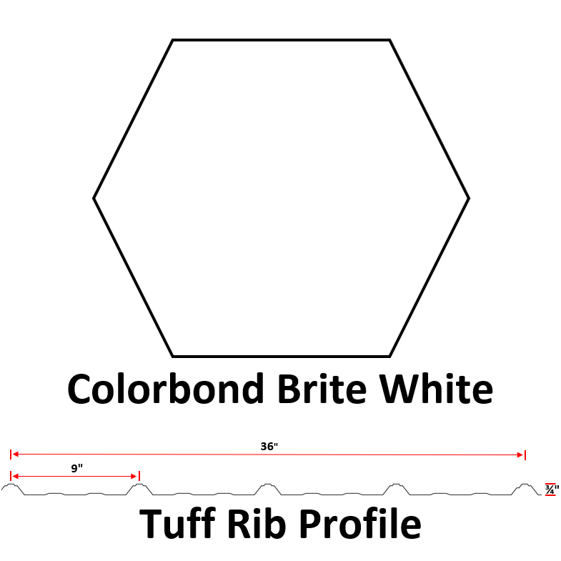 28GA. 36" wide profile with 3/4" high trapezoidal ribs, 9" on center with two minor ribs between the major ribs.