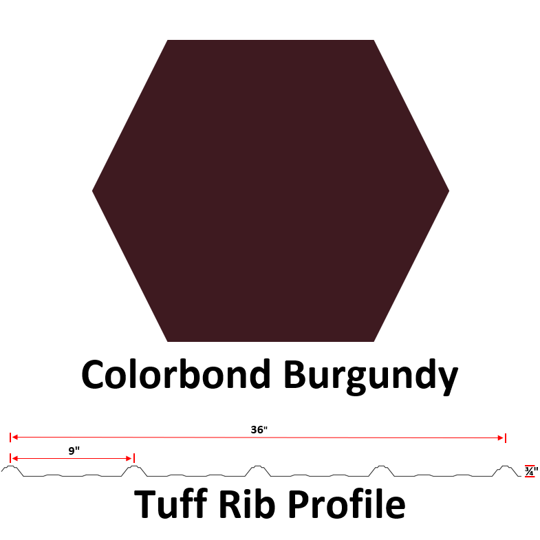 28GA. 36" wide profile with 3/4" high trapezoidal ribs, 9" on center with two minor ribs between the major ribs.