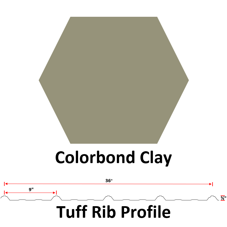 28GA. 36" wide profile with 3/4" high trapezoidal ribs, 9" on center with two minor ribs between the major ribs.