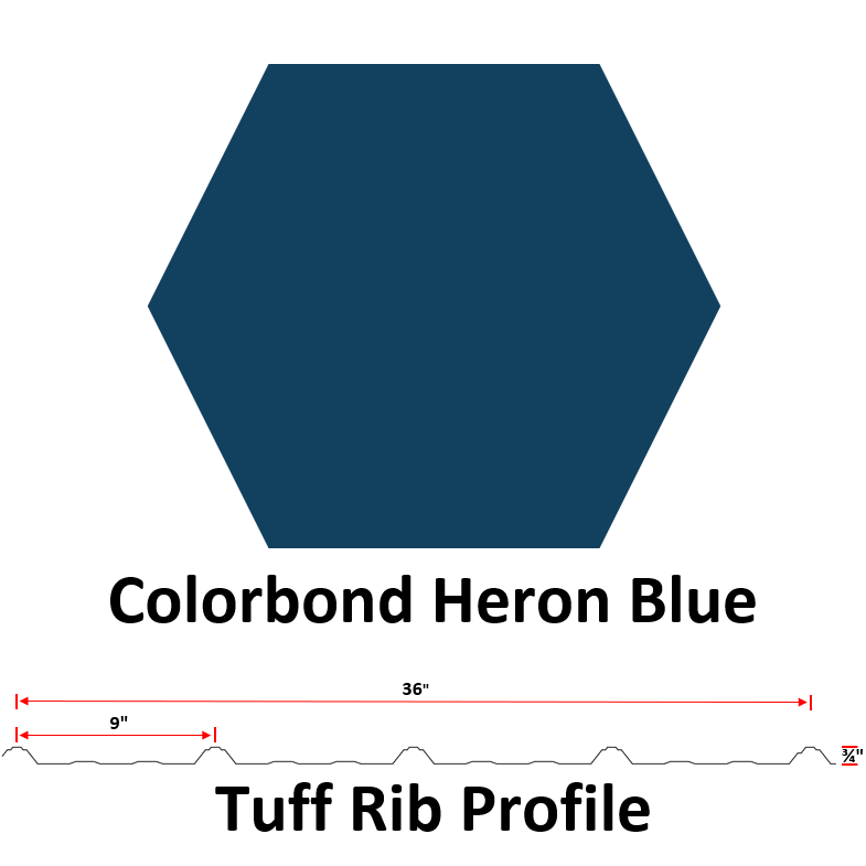 28GA. 36" wide profile with 3/4" high trapezoidal ribs, 9" on center with two minor ribs between the major ribs.