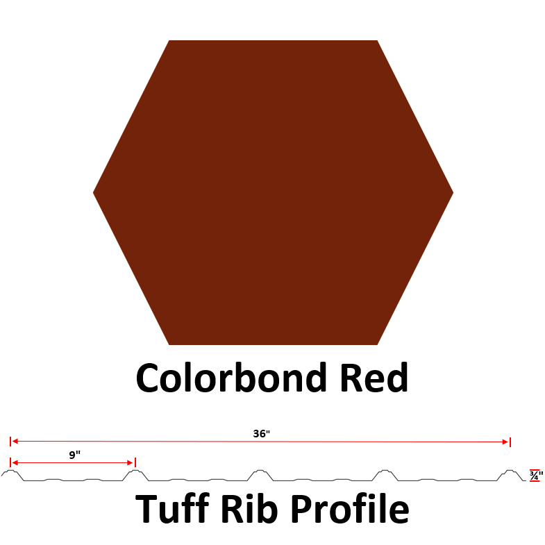 28Ga. 36" Tuff Rib, DR!PSTOP Applied On Back Side COLORBOND Red