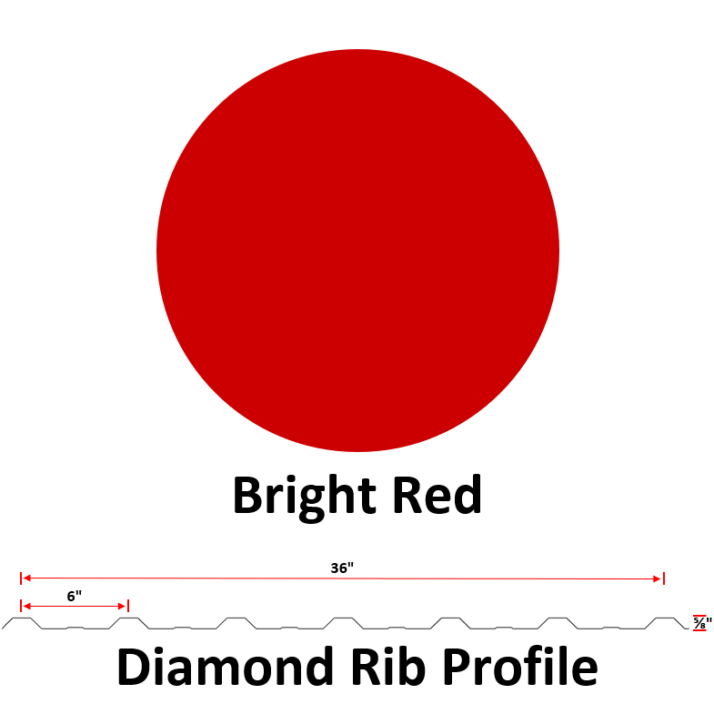 36" wide profile with 5/8" high trapezoidal ribs, 6" on center with one minor rib between the major ribs.