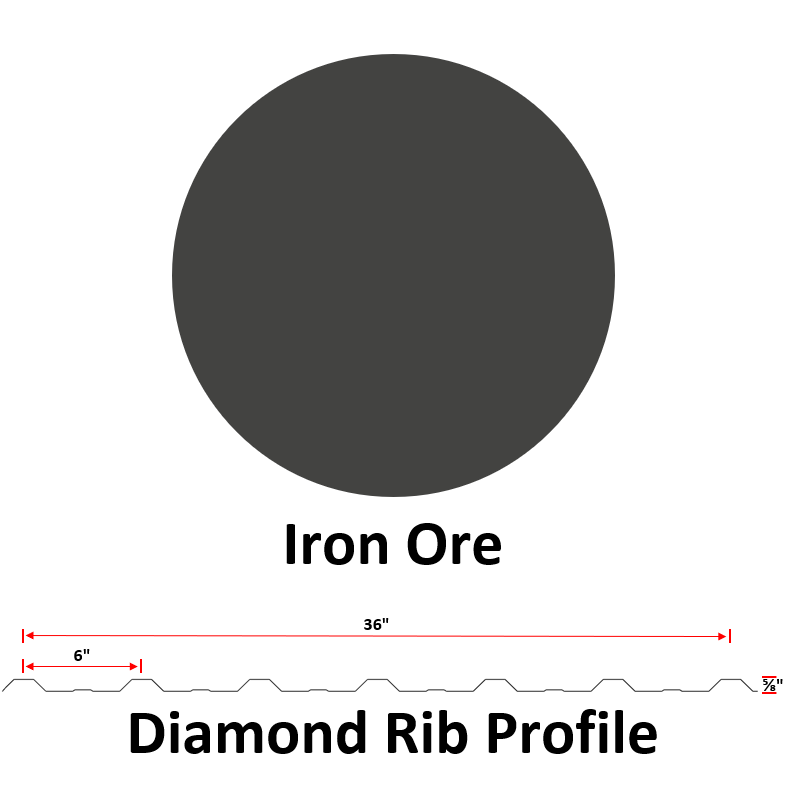 36" wide profile with 5/8" high trapezoidal ribs, 6" on center with one minor rib between the major ribs.