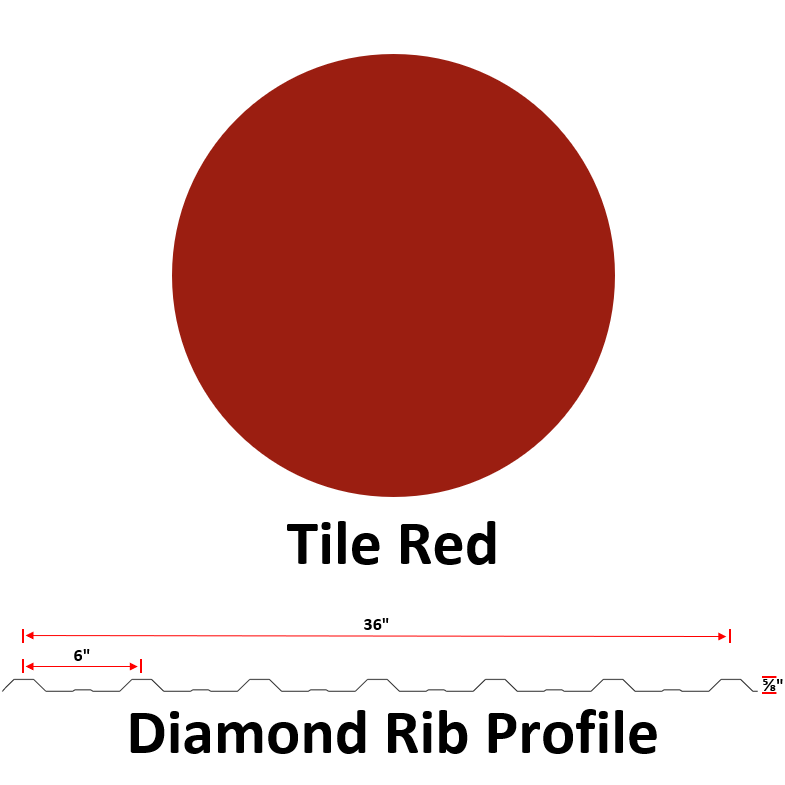 36" wide profile with 5/8" high trapezoidal ribs, 6" on center with one minor rib between the major ribs.