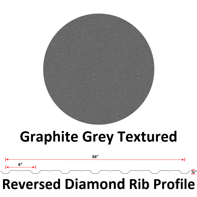 36" wide profile with 5/8" high trapezoidal ribs, 6" on center with one minor rib between the major ribs.
