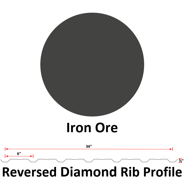 36" wide profile with 5/8" high trapezoidal ribs, 6" on center with one minor rib between the major ribs.