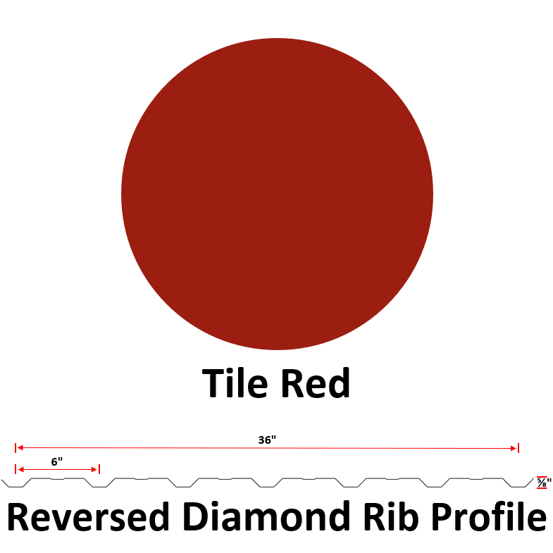 36" wide profile with 5/8" high trapezoidal ribs, 6" on center with one minor rib between the major ribs.