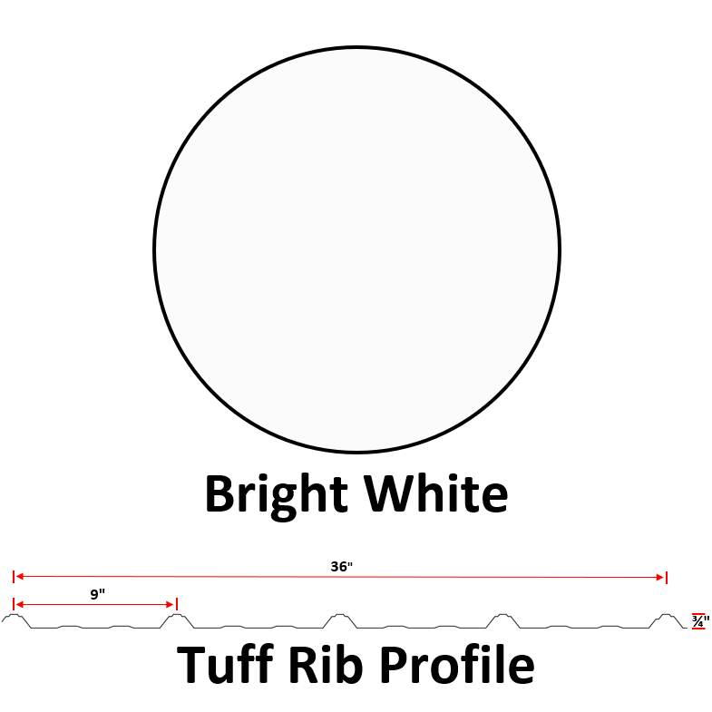 36" wide profile with 3/4" high trapezoidal ribs, 9" on center with two minor ribs between the major ribs.
