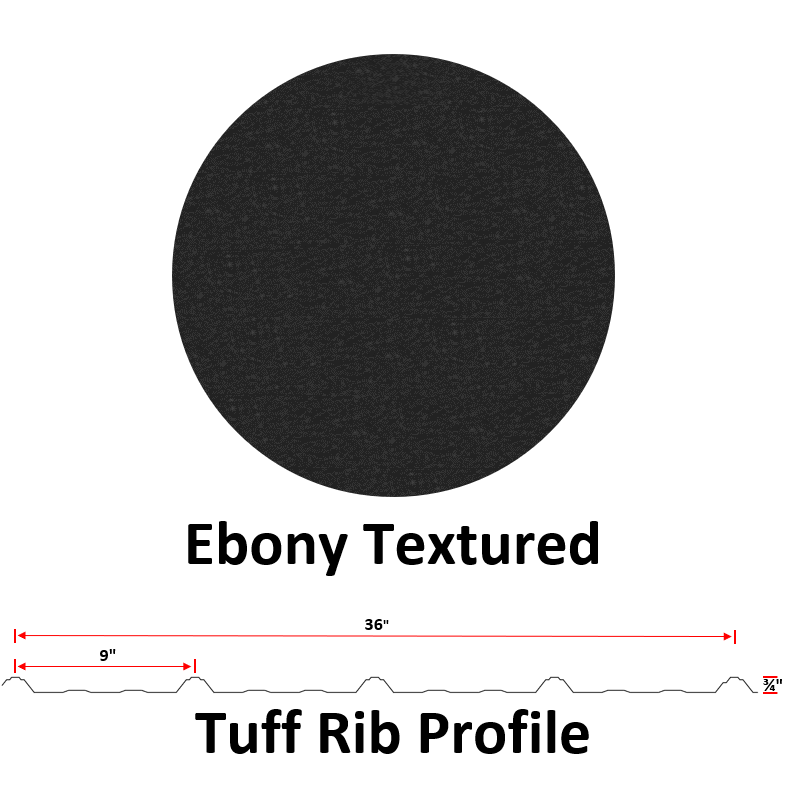 36" wide profile with 3/4" high trapezoidal ribs, 9" on center with two minor ribs between the major ribs.