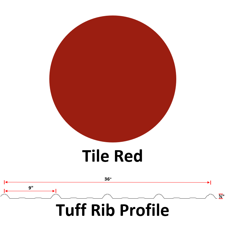 36" wide profile with 3/4" high trapezoidal ribs, 9" on center with two minor ribs between the major ribs.