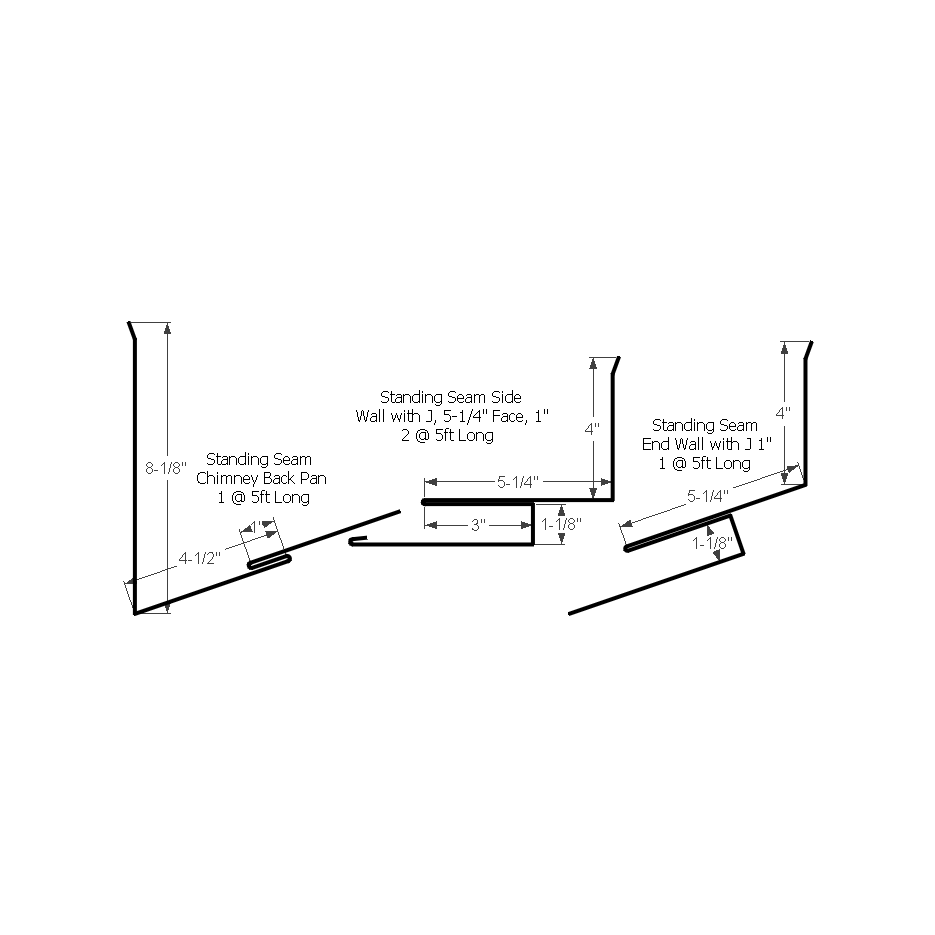Standing Seam Chimney Kit with J, 3" Face, 1-1/2" Stone Grey