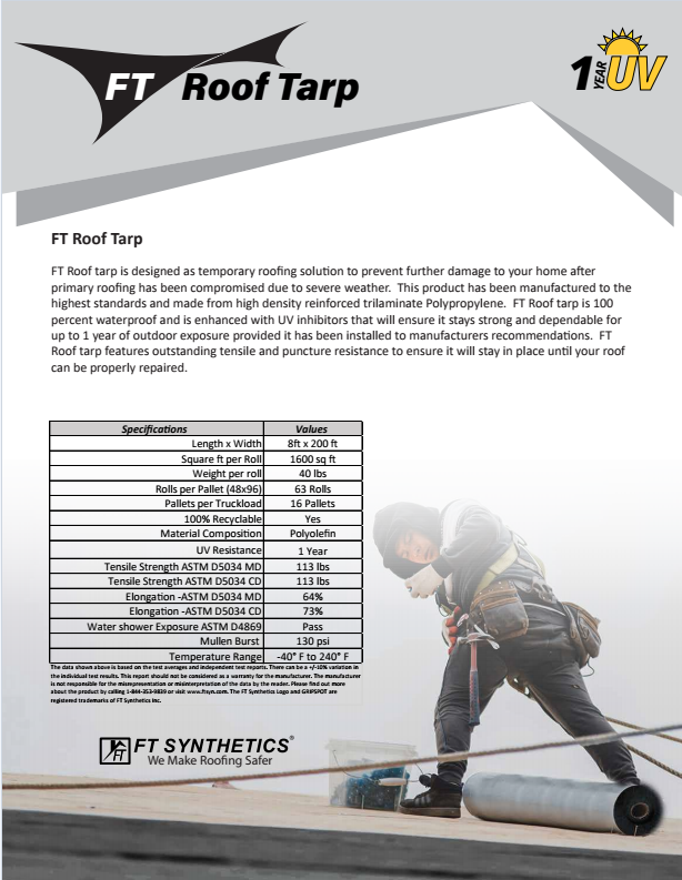 FT Roof tarp is designed as temporary roofing solution to prevent further damage to your home after