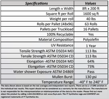 FT Synthetics Roof Tarp 96" x 200ft (16 Square)