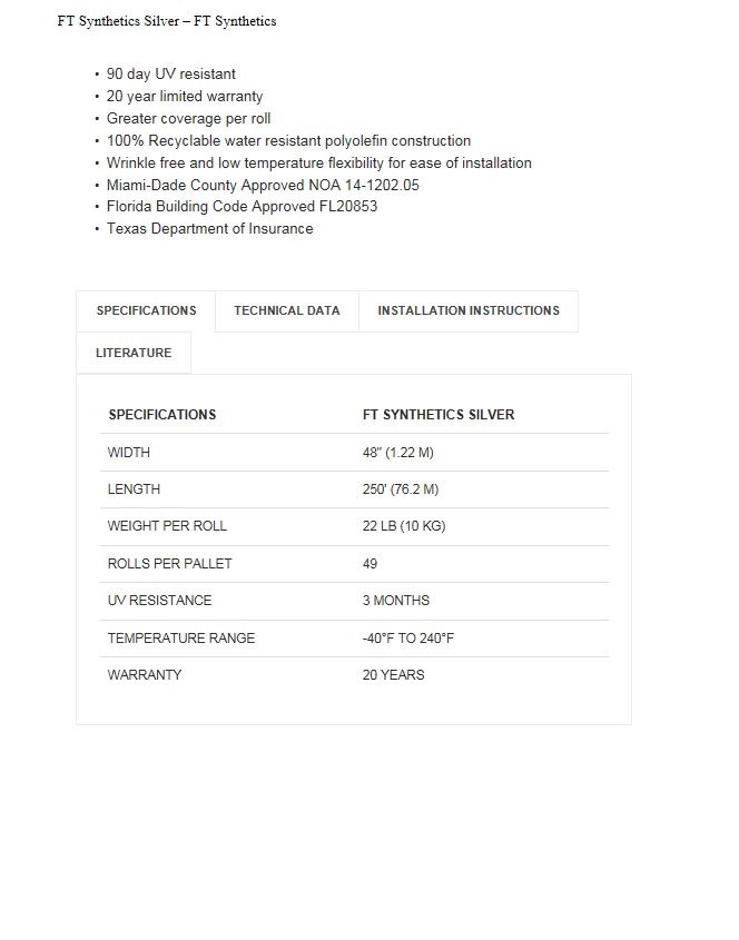 FT Synthetics SILVER Underlayment 48" x 250ft (10 Square)