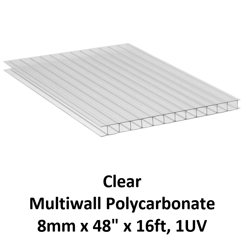 Multiwall Polycarbonate 8mm x 48" x 16ft, 1UV Clear