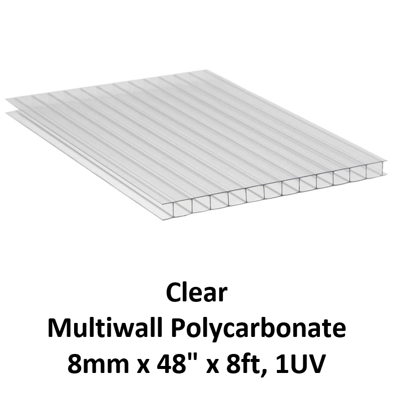 Multiwall Polycarbonate 8mm x 48" x 8ft, 1UV Clear