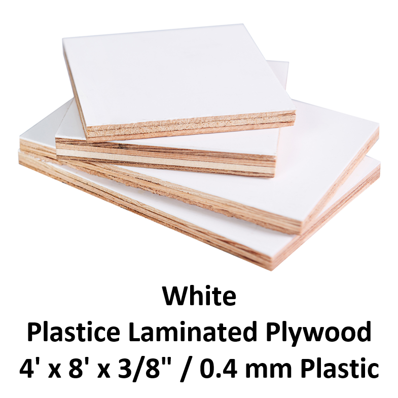 Plastic Laminated Plywood 4' x 8' x 3/8" / 0.4 mm Plastic White