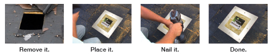 Quarrix EZ-PLUG Patch fills roof deck holes in seconds. Simply trim hole to the correct size, drop in the EZ-PLUG and gun-nail it in. Add money to the bottom line by upgrading roofs to ridge vent efficiently with EZ-PLUG Patch.