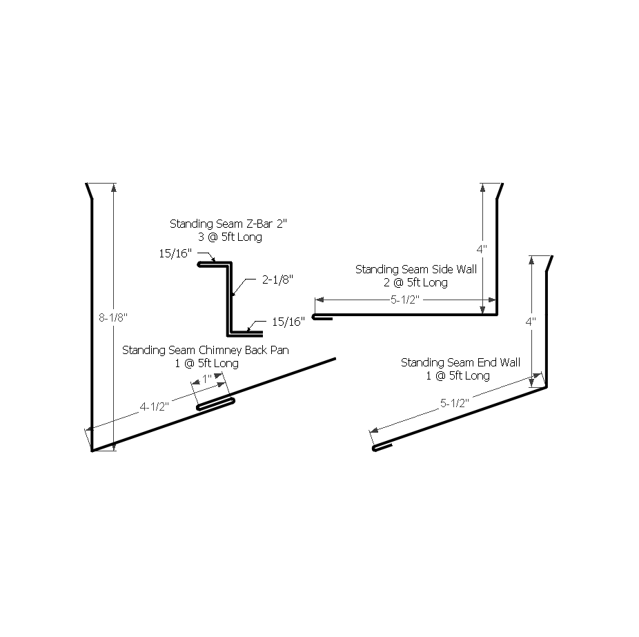 /Products/ Metal Trims/Standing Seam Trim/Click Here For Ebony Textured/Standing Seam Chimney Kit with Z-Bar 2" Ebony Textured